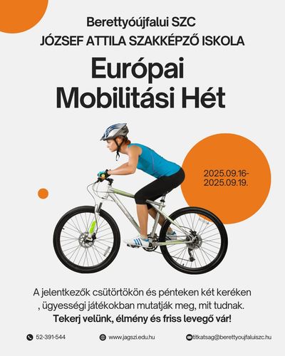 Berettyóújfalui SZC József Attila Szakképző Iskola Mobilitási Hete, ahol a vállalkozó kedvű jelentkezők ügyességi játékokkal és kerékpártúrával élhetik át a mozgás örömét!